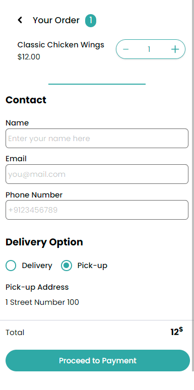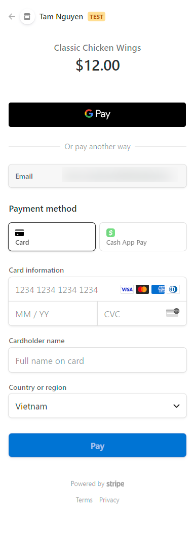 Step 2: Wait for around 10 seconds for all changes to apply and head to your menu to test it out. You should see the check out page like this, go ahead and try to checkout by clicking on Proceed to Payment button: