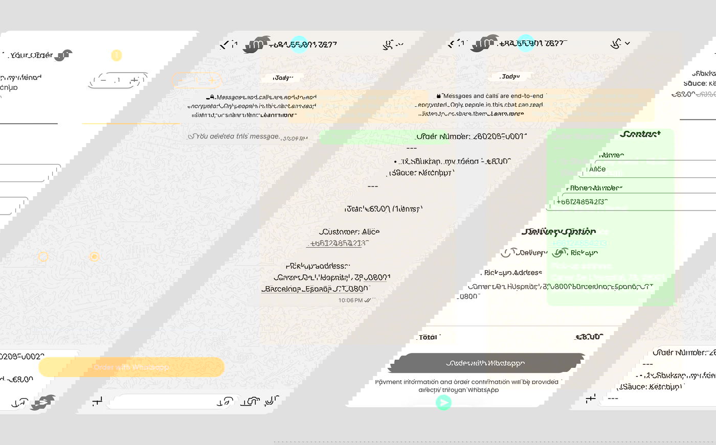 When a customer sends an order, you'll get a WhatsApp message with: