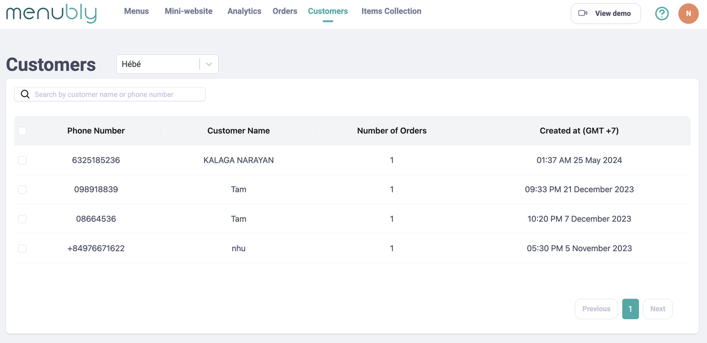If you have multiple menus, use the dropdown next to "Customers" to select which menu's customers you want to view